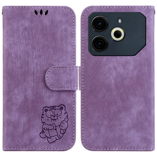 Funda de Cuero con Relieve de Tigre para Tecno Pova 6 Neo (Morado)