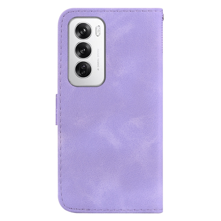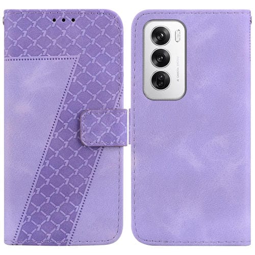 Funda de Cuero con Relieve En Forma de 7 para Oppo Reno12 5G Global (Morado)