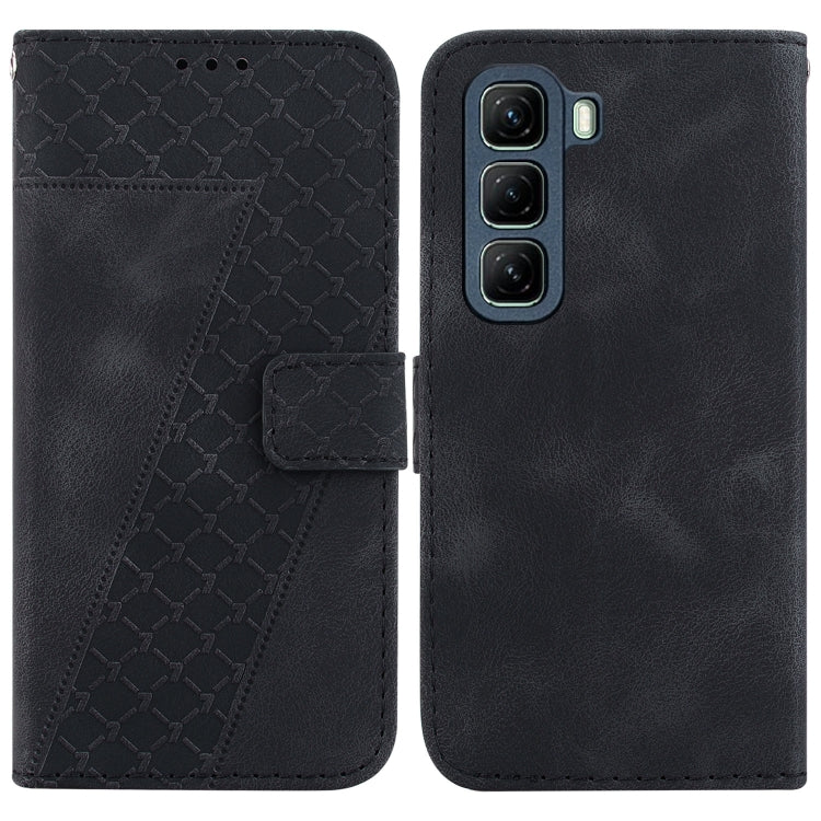 Funda de Cuero con Relieve en Forma de Siete para Infinix Hot 50 5G (Negra)
