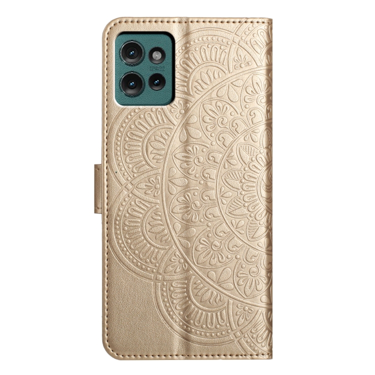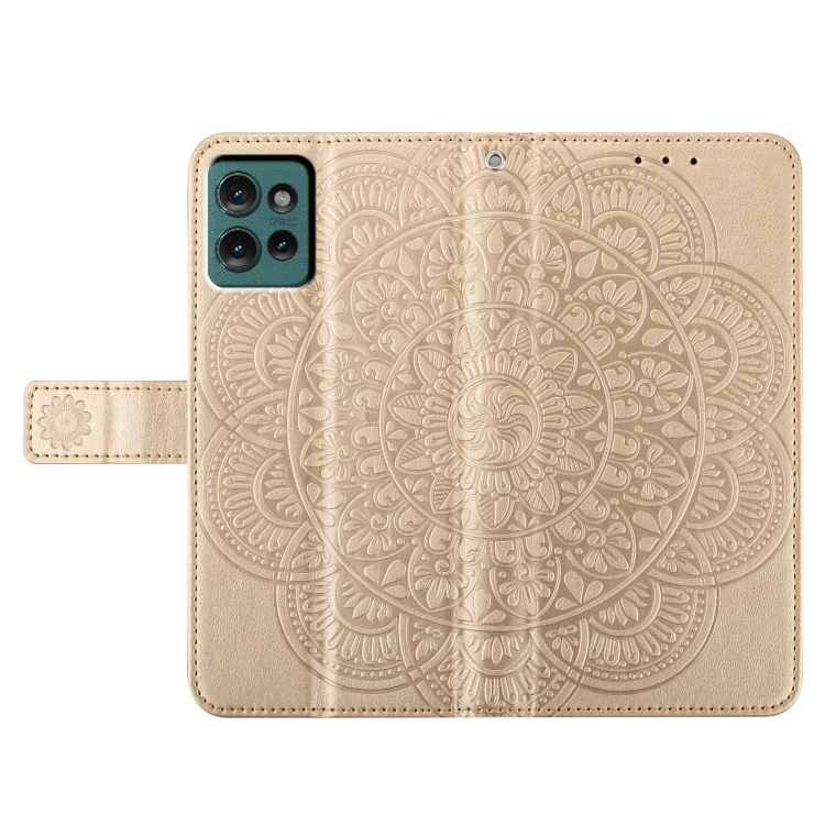 Funda de Cuero con Relieve Floral para Motorola Edge 50 5G (Dorada)