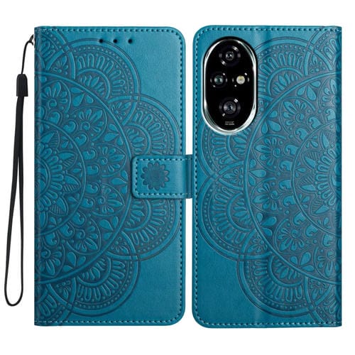 Funda de Cuero con Relieve Floral para Honor 200 Pro (Azul)