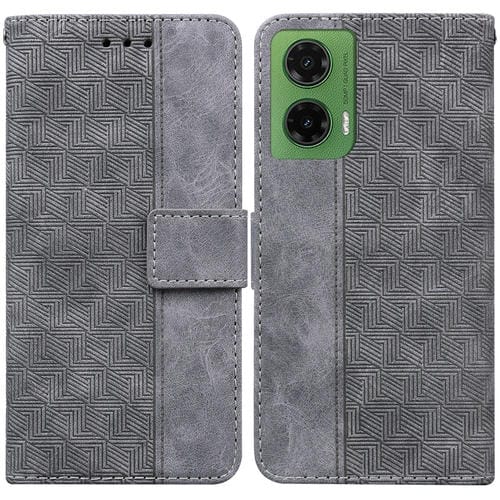 Funda de Cuero con Relieve Geométrico para Motorola Moto G35 (Gris)