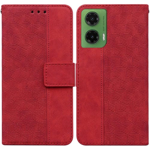 Funda de Cuero con Relieve Geométrico para Motorola Moto G35 (Rojo)