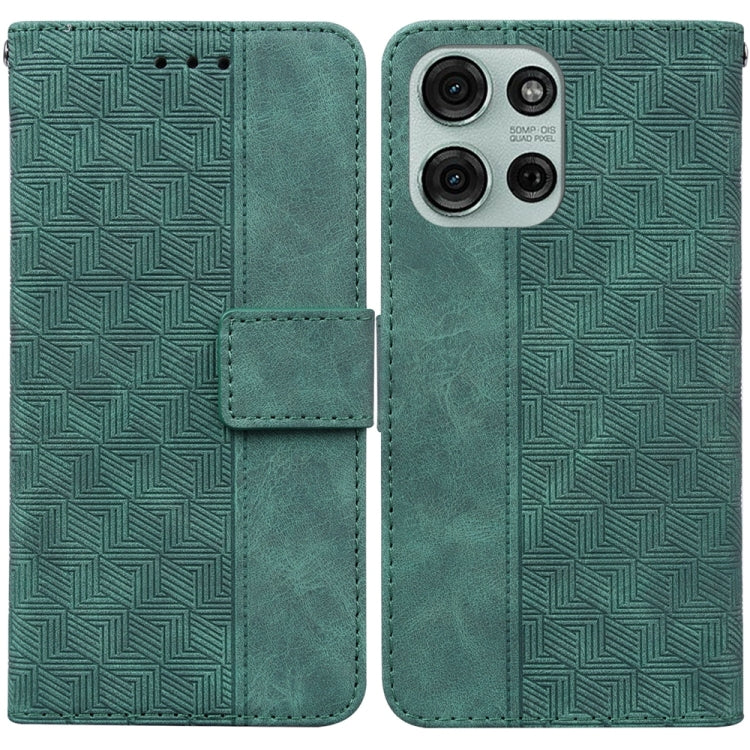 Funda de Cuero con Relieve Geométrico para Motorola Moto G75 5G (Verde)