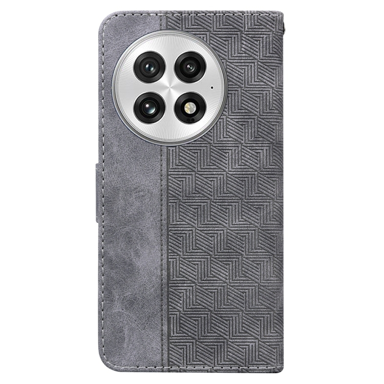 Funda de Cuero con Relieve Geométrico para OnePlus 13 (Gris)