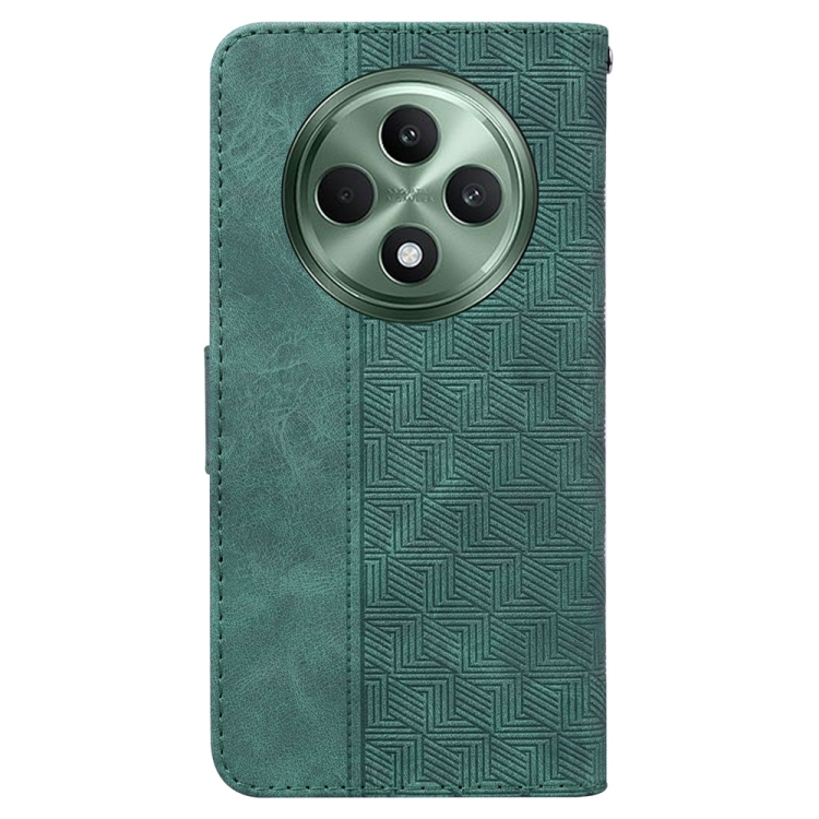 Funda de Cuero con Relieve Geométrico para Teléfono Oppo Reno12 F 5G (Verde)