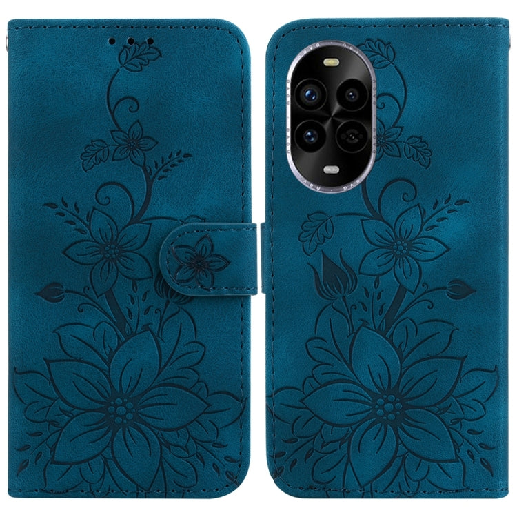 Funda de Cuero con Relieve Lily para Huawei Nova 13 Pro (Azul oscuro)