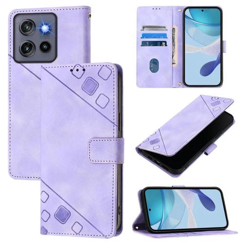 Funda de Cuero con Relieve para Motorola Moto G Stylus 5G (2025) con Tacto de Piel (Morado Claro)