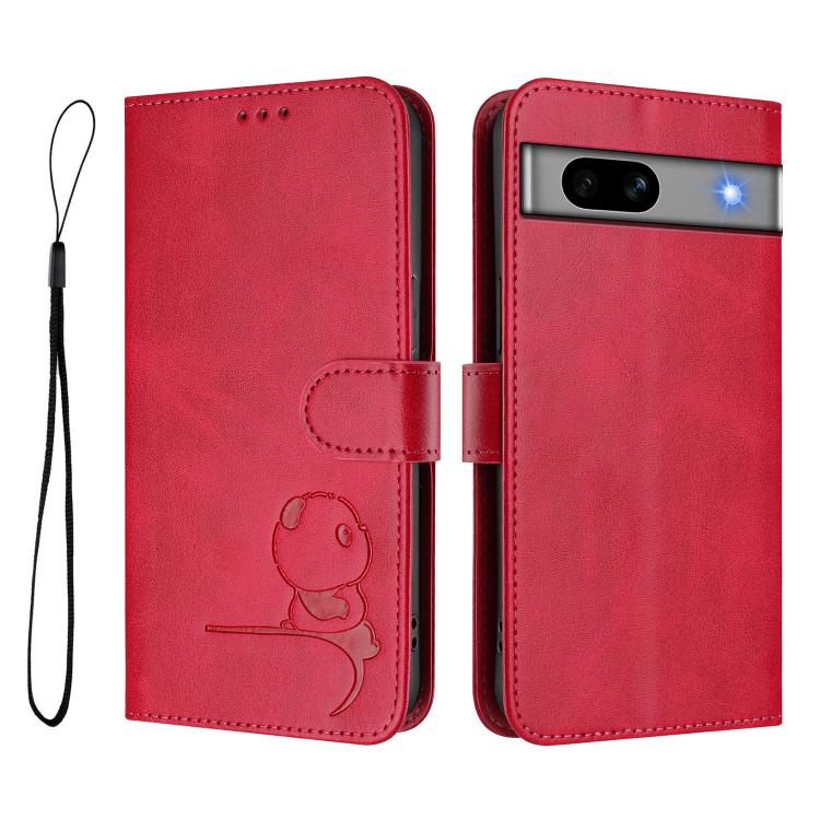Funda de cuero con relieve RFID y cordón para Google Pixel 7a (rosa)