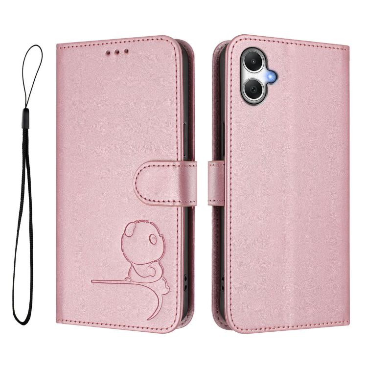 Funda de cuero con relieve RFID y cordón para Samsung Galaxy A06 4G/5G (rosa)