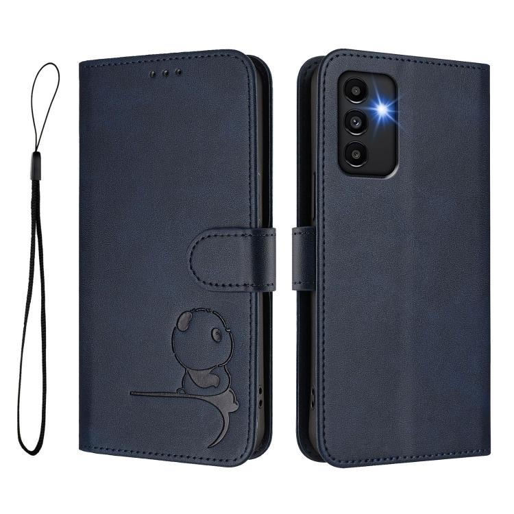 Funda de cuero con relieve RFID y cordón para Samsung Galaxy A13 5G/4G (azul)