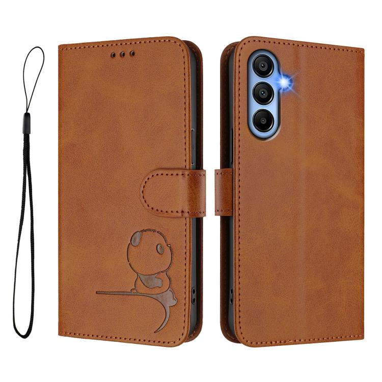 Funda de cuero con relieve RFID y cordón para Samsung Galaxy A15 5G/4G (marrón)
