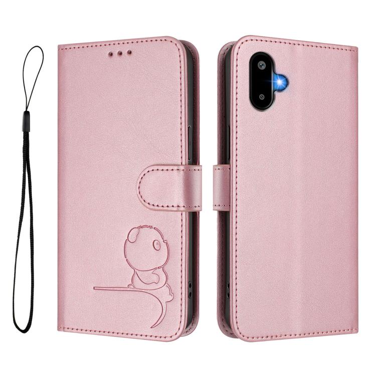 Funda de cuero con relieve RFID y cordón para Samsung Galaxy F06 5G / M06 5G (rosa)
