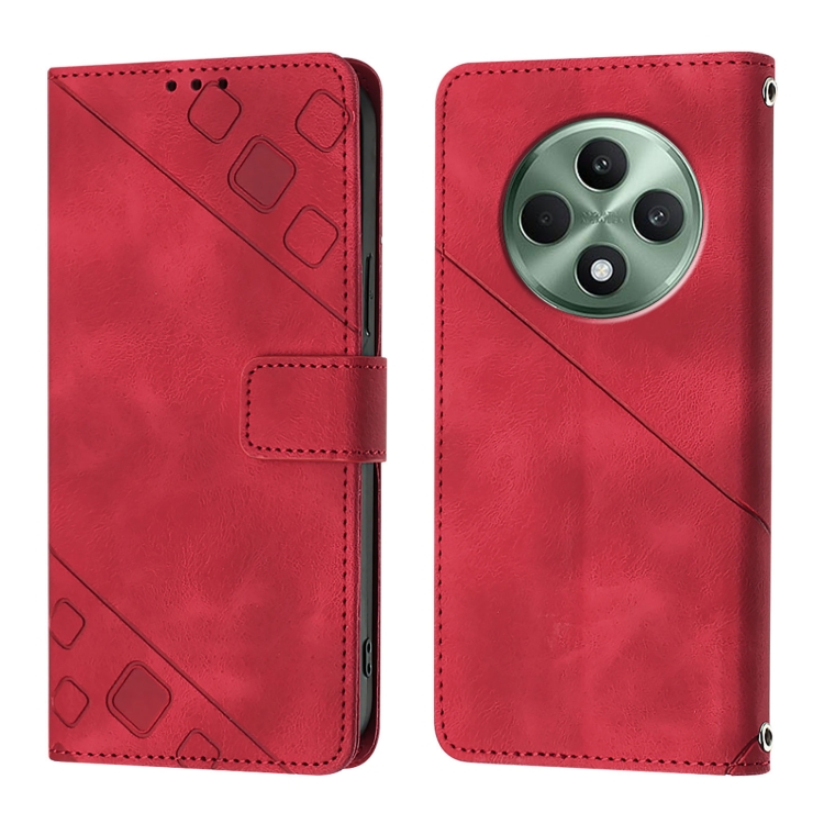 Funda de Cuero con Relieve y Tacto de Piel para Oppo Reno12 F 5G (Rojo)