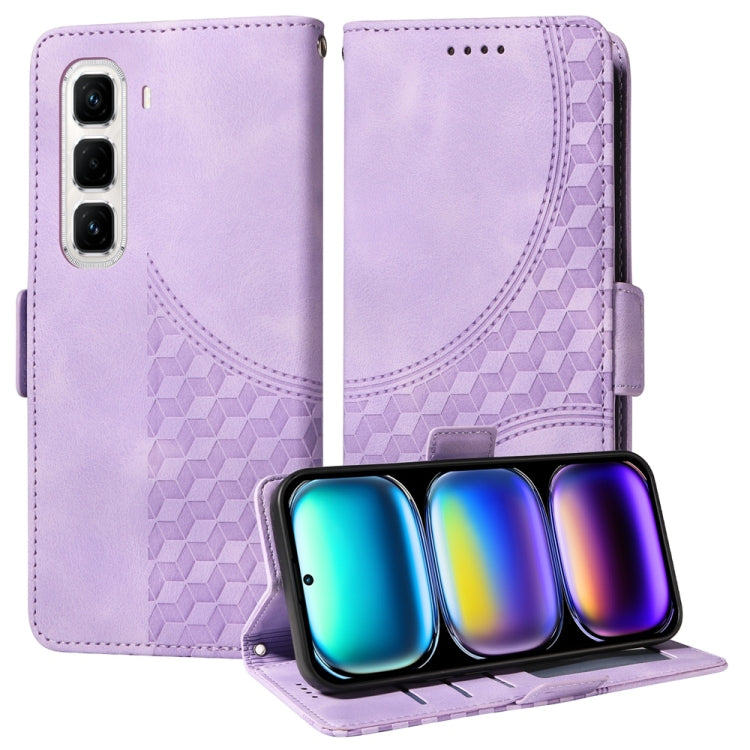 Funda de Cuero para Infinix Hot 50 Pro+ 4G con Rombos en Relieve y Estrellas (Morado)