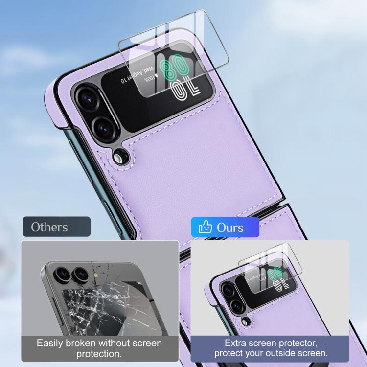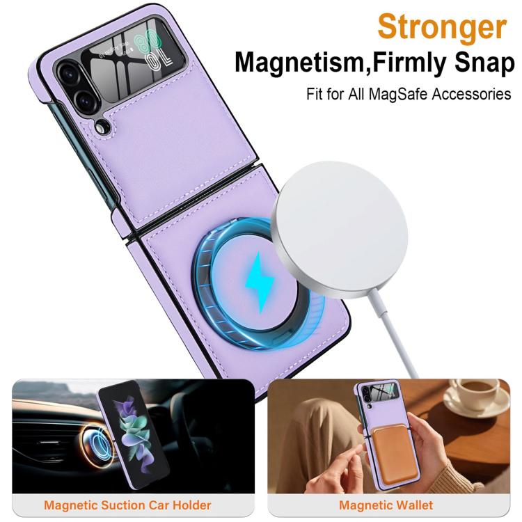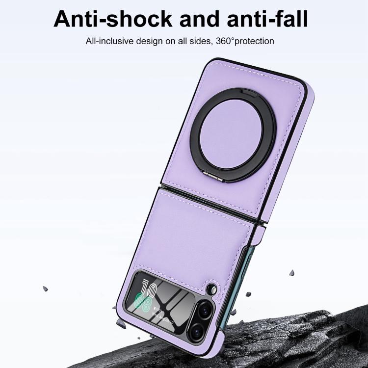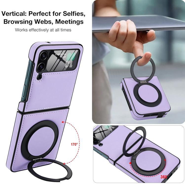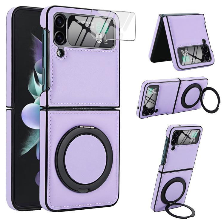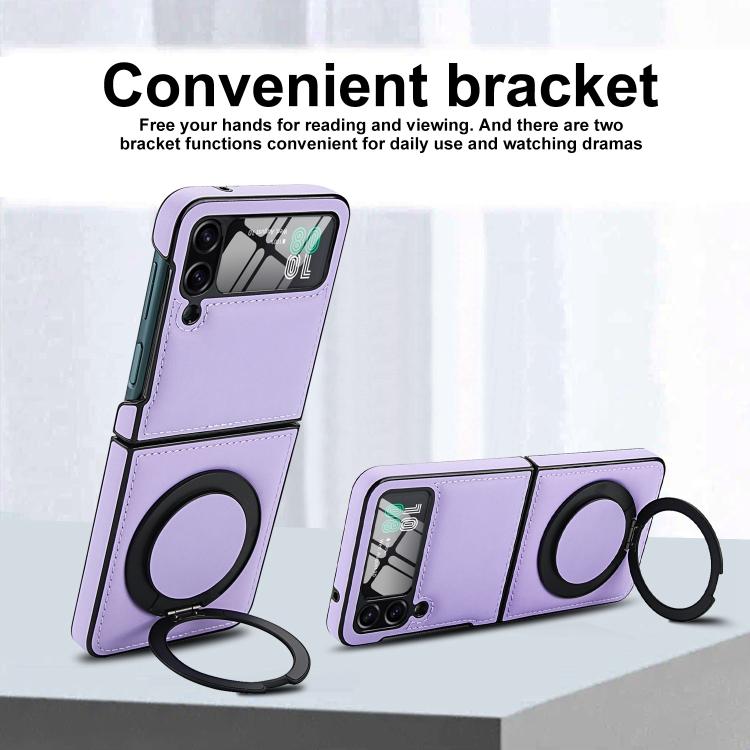 Funda de cuero con soporte giratorio plegable y película MagSafe integrada para Samsung Galaxy Z Flip3 5G (morado claro)