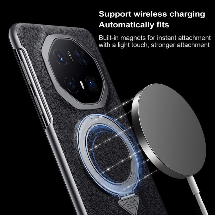 Funda de Cuero Sulada con Soporte Magnético Magsafe y Ventana para Huawei Mate 70 Rs Ultimate (Rojo)