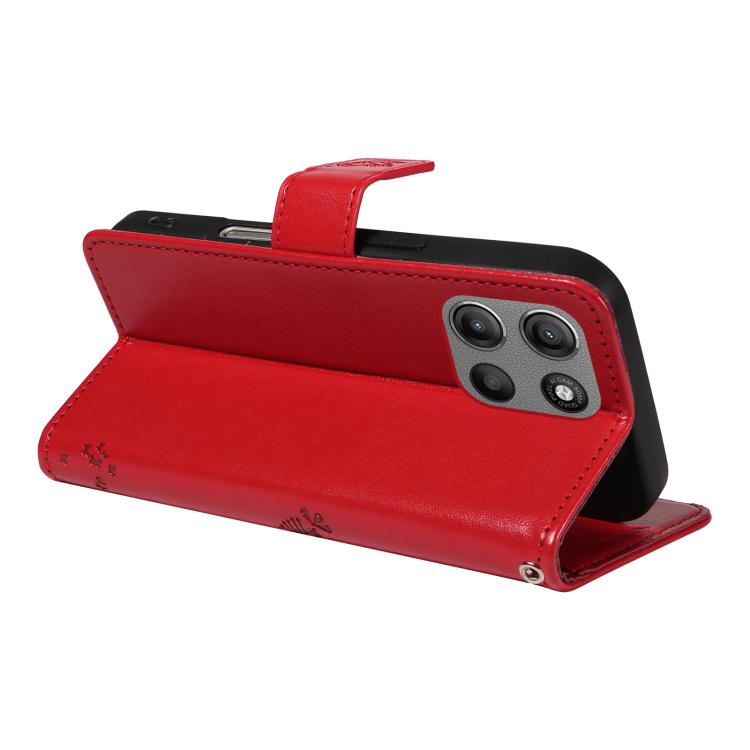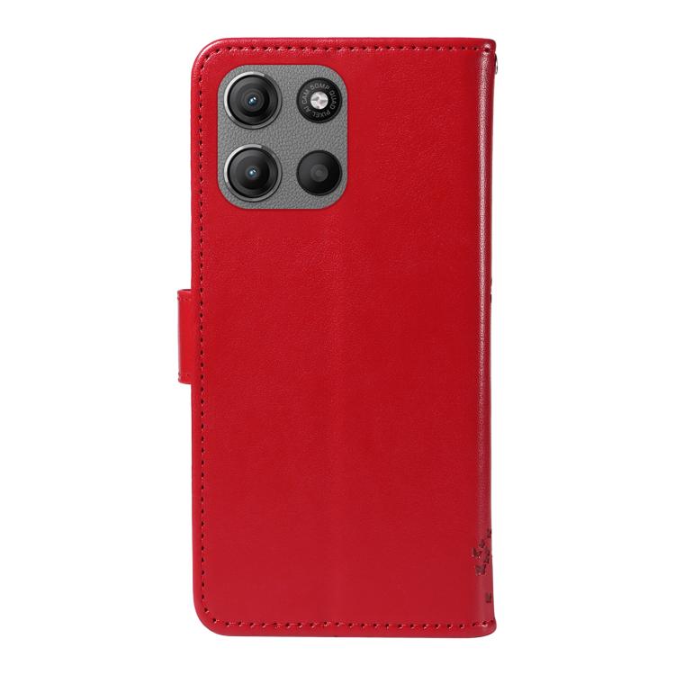 Funda de Cuero con Tapa para Motorola Moto G15 con Diseño de Árbol y Gato En Relieve (Rojo)
