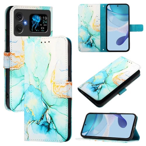Funda de Cuero con Tapa para Cubot A20 Pt003 con Patrón Mármol (Verde)