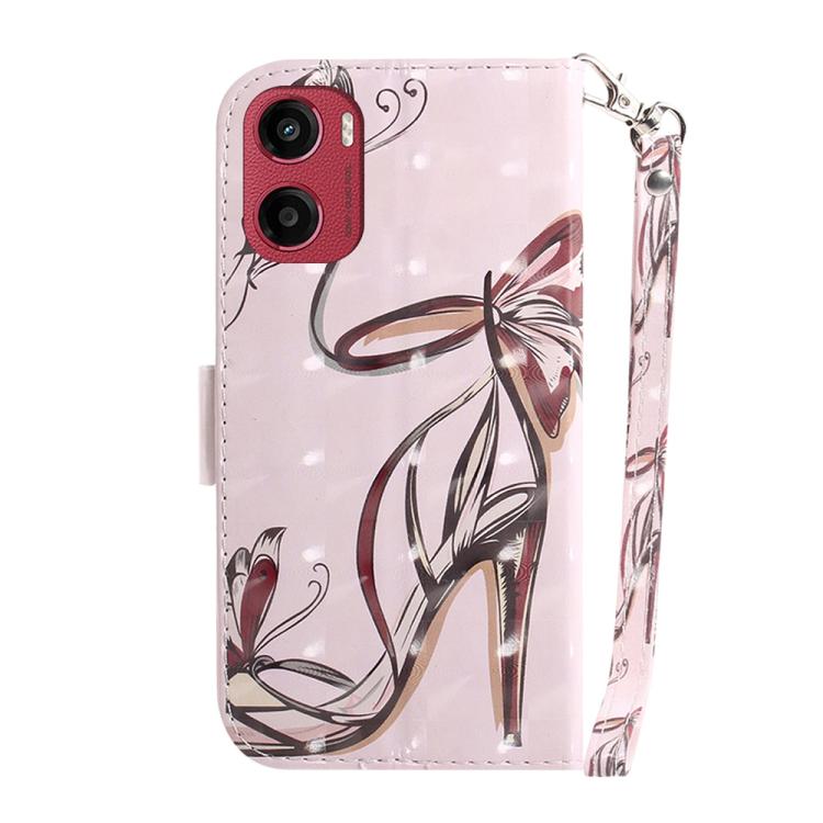 Funda de Cuero con Tapa 3D para Motorola Moto G05/E15 (Mariposa y Tacón Alto)
