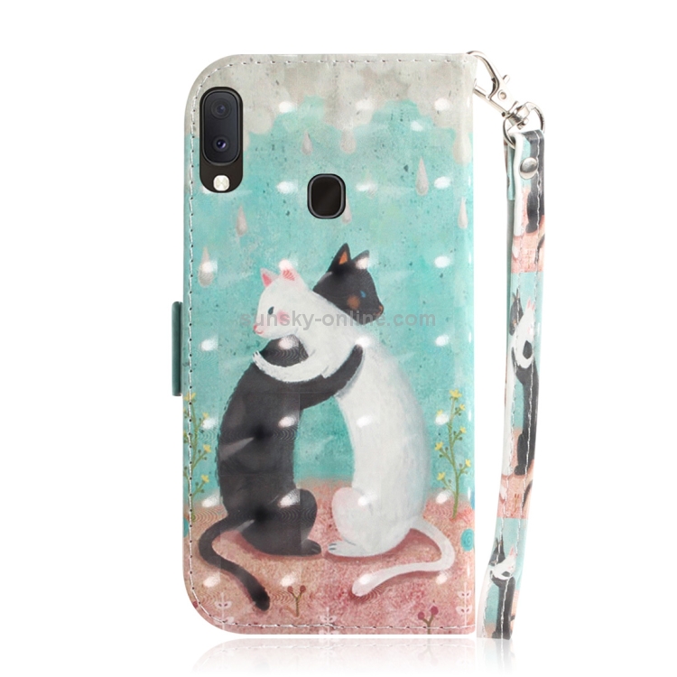 Funda Cuero con Tapa Horizontal para Galaxy A20E con Dibujo Gatos 3D Soporte Ranuras Tarjetas Billetera