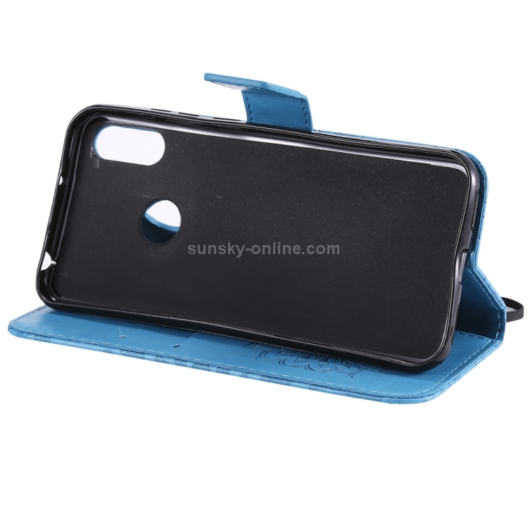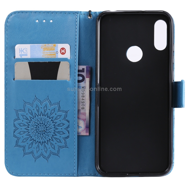 Funda de Cuero con Tapa Horizontal Estampado Sol para Huawei Honor Play 8A Y6 (2019) con Ranura, Soporte, Billetera y Cordón (Azul)