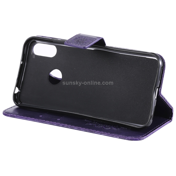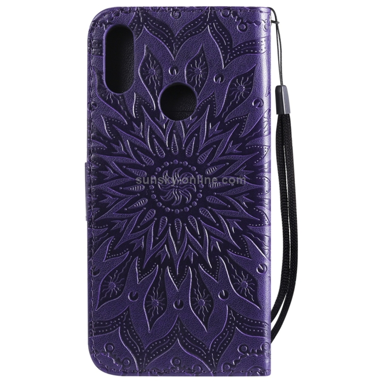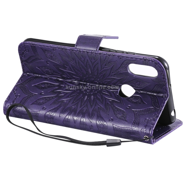 Funda de Cuero con Tapa Horizontal para Huawei Honor Play 8A / Y6 (2019) con Ranura, Soporte y Cordón (Morado)