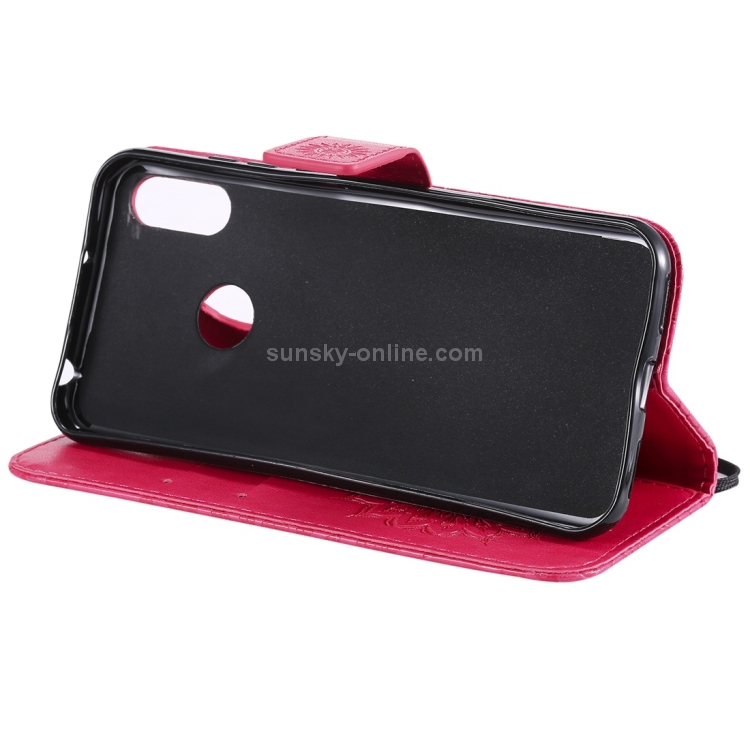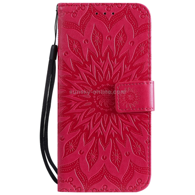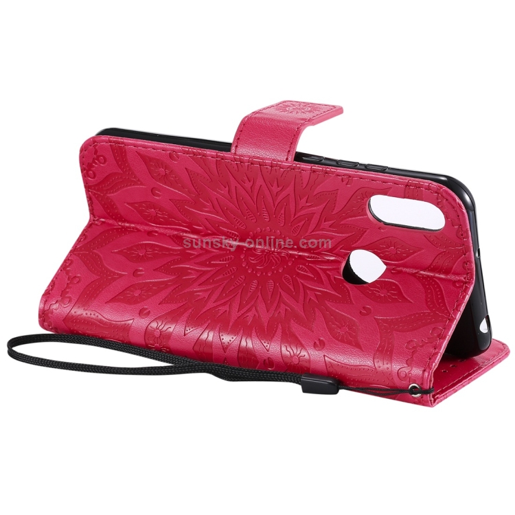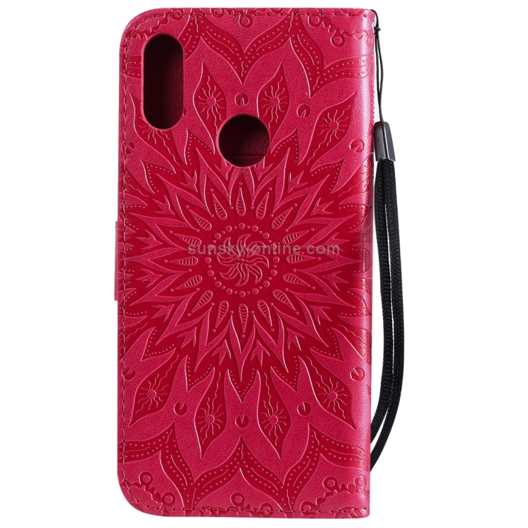 Funda de Cuero con Tapa Horizontal Estampado Sol para Huawei Honor Play 8A / Y6 (2019) con Ranura Tarjeta Soporte Billetera Cordón (Rojo)