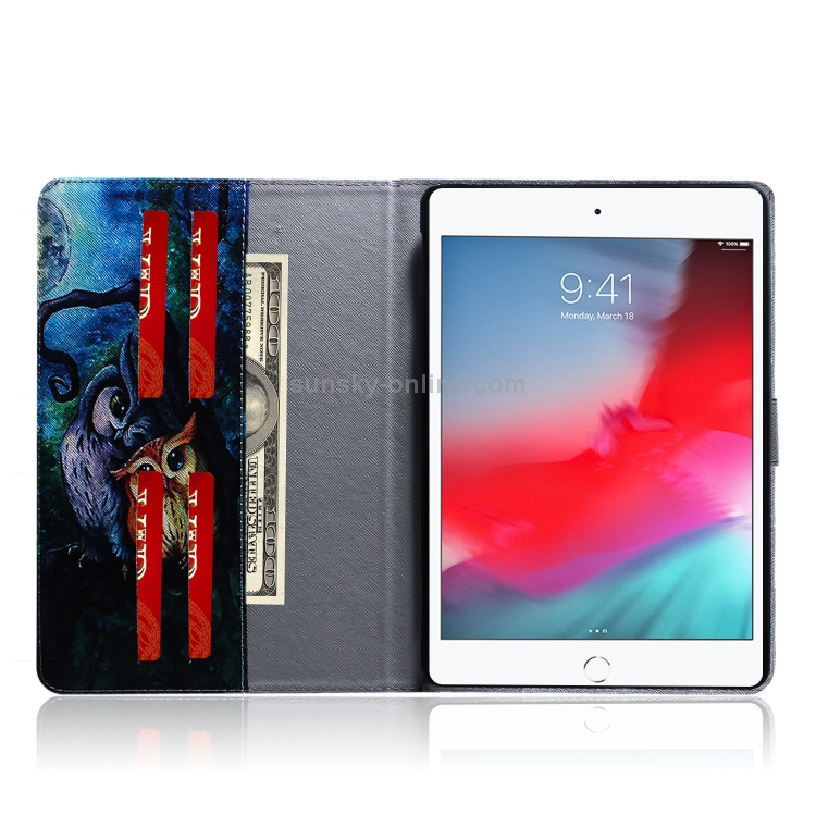 Funda de Cuero para iPad Mini (2019) / 4/3/2/1 con Tapa Horizontal, Patrón Búho, Soporte, Ranura Tarjeta y Billetera