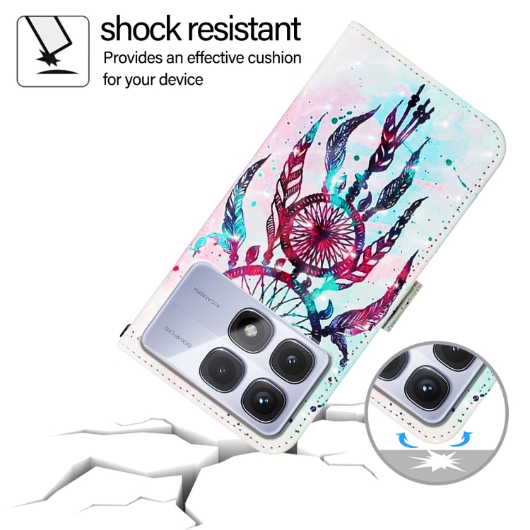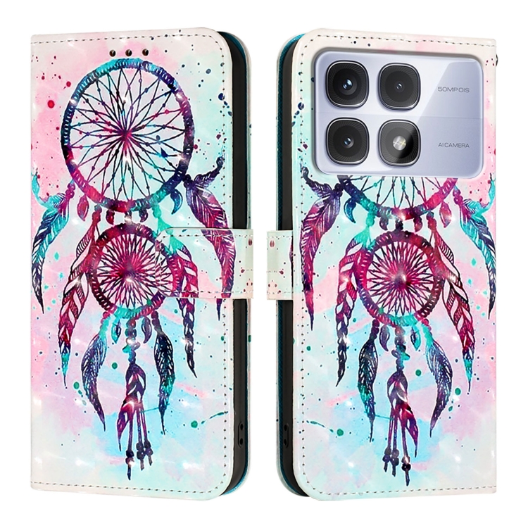 Funda de Cuero con Tapa Horizontal con Pintura 3D Global para Redmi K70 Ultra 5G (Campanas de Viento con Gotas de Colores)