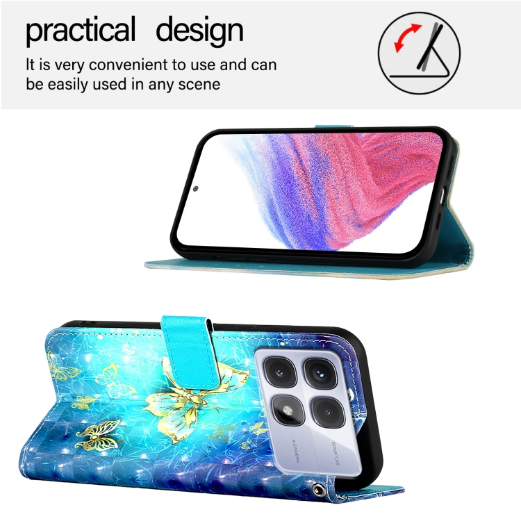 Funda de Cuero con Tapa Horizontal con Pintura 3D Global para Redmi K70 Ultra 5G (Mariposa Dorada)