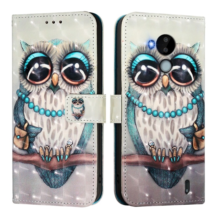 Funda de Cuero con Tapa Horizontal y Pintura 3D para Nokia C30 (Búho Gris)