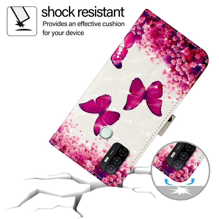 Funda de Cuero con Tapa Horizontal con Pintura 3D para Oppo A32 2020 4G/A53 2020 4G (Mariposa Rosa)