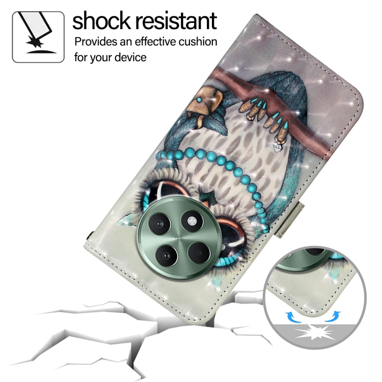 Funda de Cuero con Tapa Horizontal con Pintura 3D para Oppo Reno12 F Global (Búho Gris)