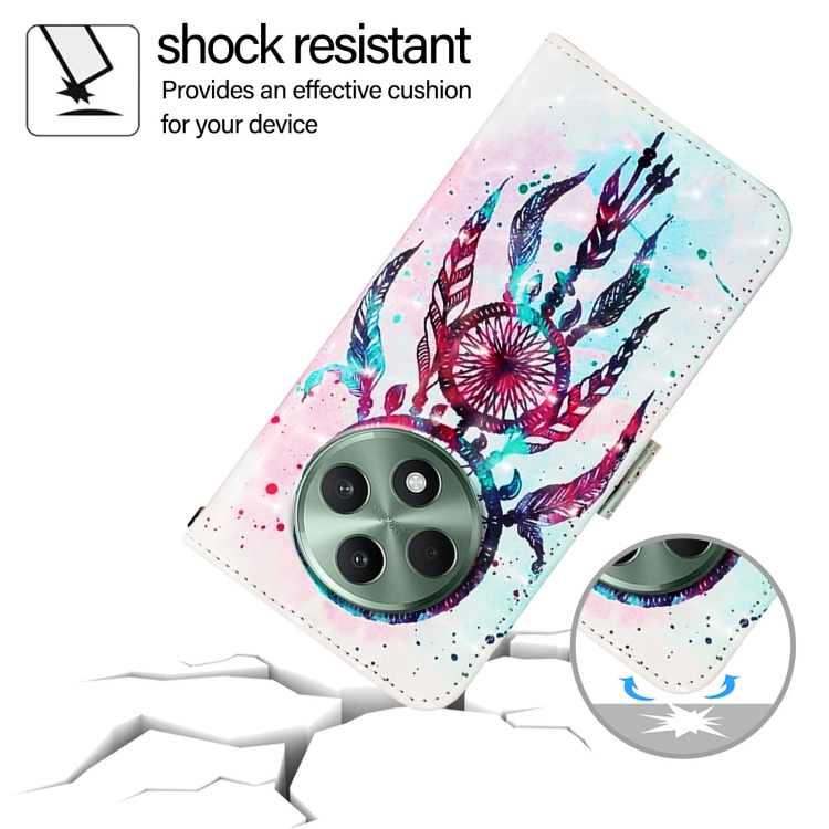 Funda de Cuero con Tapa Horizontal con Pintura 3D para Oppo Reno12 F Global (Campanas de Viento con Forma de Gota de Color)