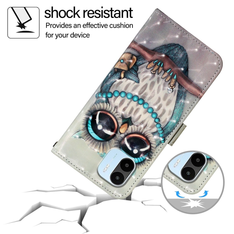 Funda de Cuero con Tapa Horizontal con Pintura 3D para Redmi A1 4G Global/Redmi A2 4G (Búho Gris)