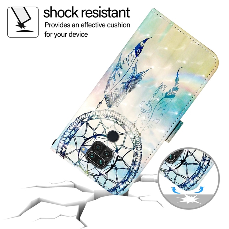 Funda de Cuero con Tapa Horizontal con Pintura 3D para Redmi Note 9 4G/Redmi 10X 4G (Dream Wind Chimes)