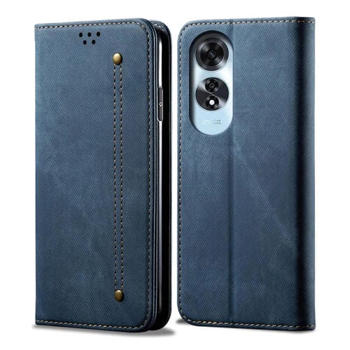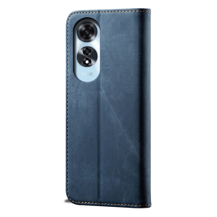 Funda de Cuero con Tapa Horizontal y Textura Vaquera para Oppo A60 (Azul)