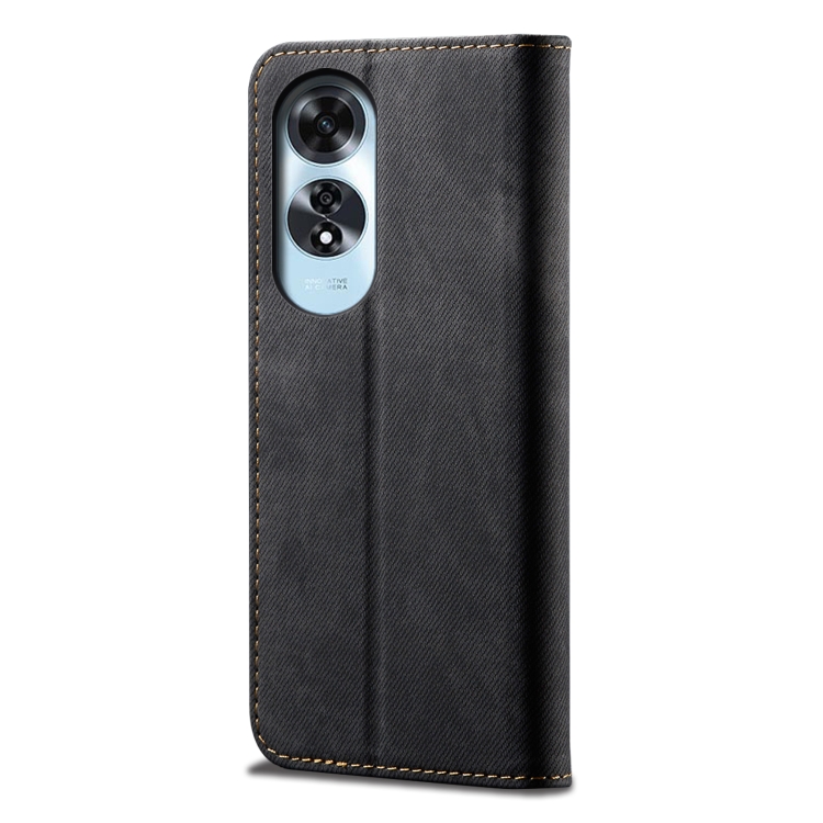 Funda de Cuero con Tapa Horizontal y Textura Vaquera para Oppo A60 (Negro)