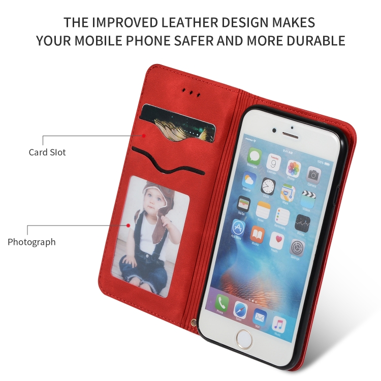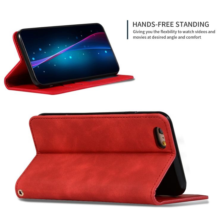 Funda de Cuero con Tapa Horizontal Magnética Retro Skin Feel Business para iPhone 6S y 6 (Rojo)