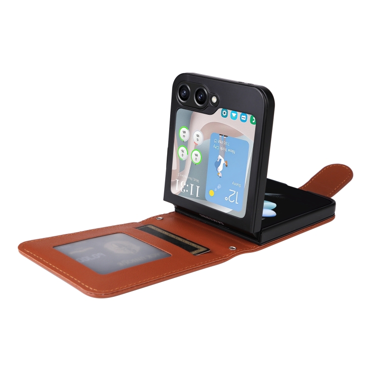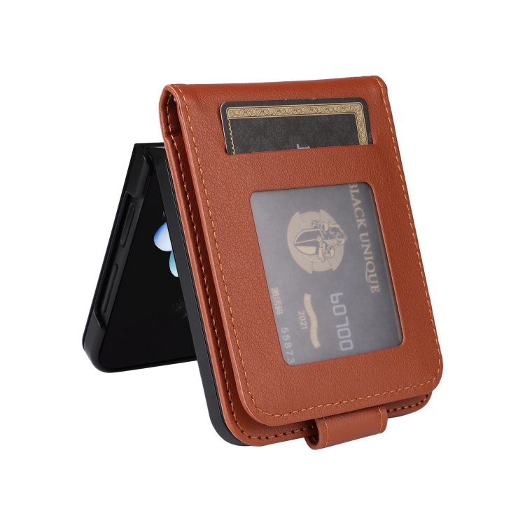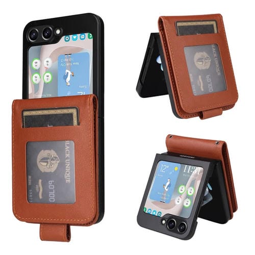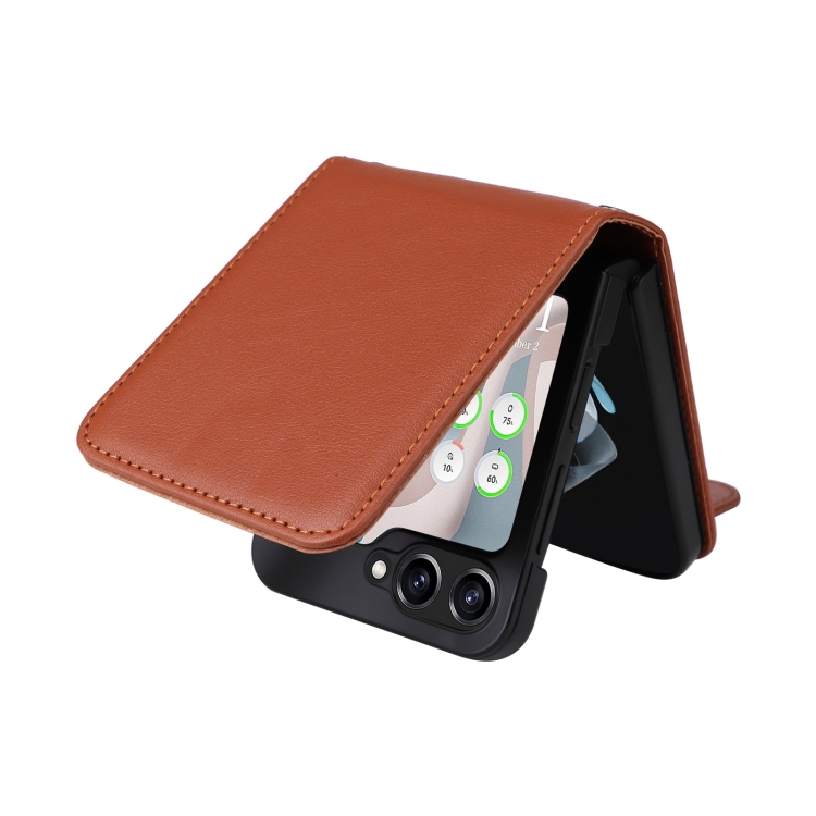 Funda Cuero con Tapa Horizontal Samsung Galaxy Z Flip5 5G Ranura Tres Tarjetas (Marrón)