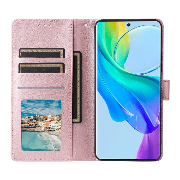 Funda de Cuero con Tapa Horizontal Multifuncional para Vivo Y36 4G Global / Y78 con Ranura para Tres Tarjetas (Oro Rosa)