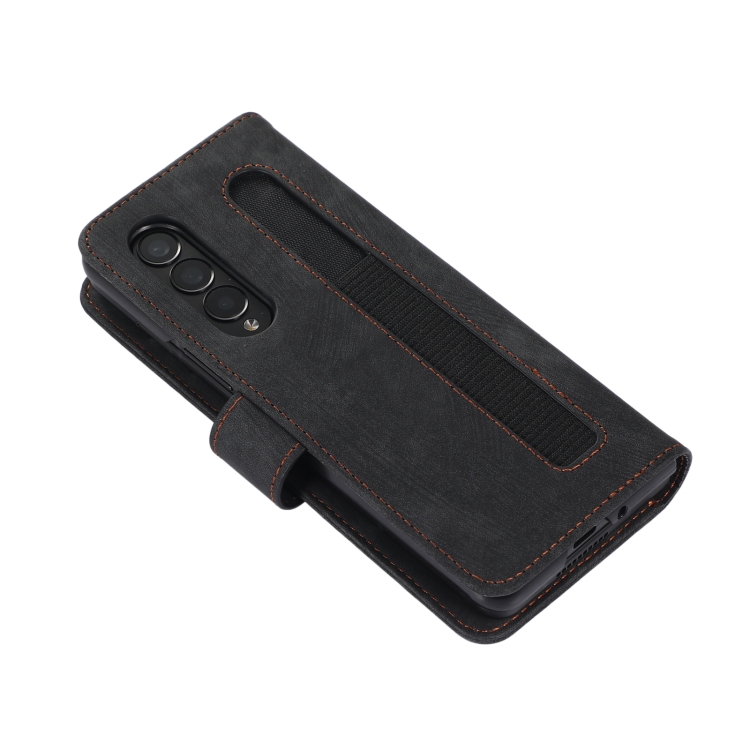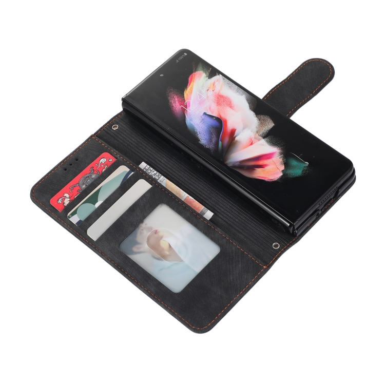 Funda de Cuero para Samsung Galaxy Z Fold3 5G con Tapa Horizontal y Ranura para Bolígrafo (Negro)