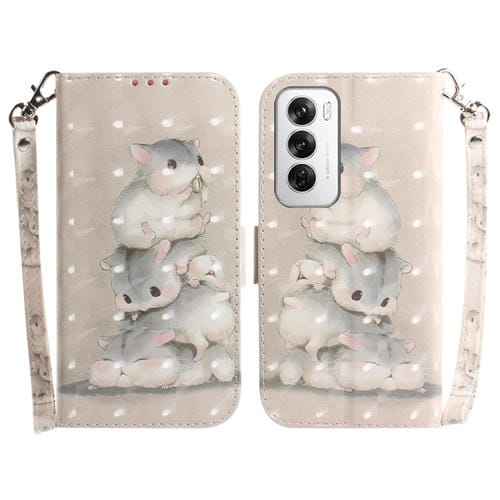 Funda de Cuero con Tapa Horizontal y Diseño 3D para Oppo Reno12 5G Global (Ardillas)