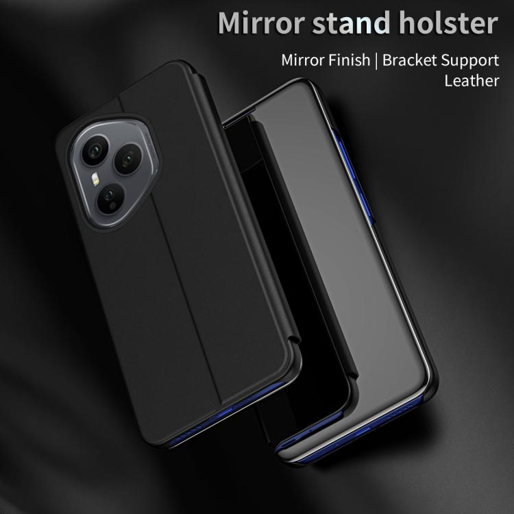 Funda de cuero con tapa horizontal y espejo chapado de 160,8 mm para Honor 400 Pro Global con soporte (oro rosa)