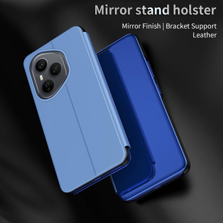 Funda de cuero con tapa horizontal y espejo chapado de 160,8 mm para Honor 400 Pro Global con soporte (plateada)