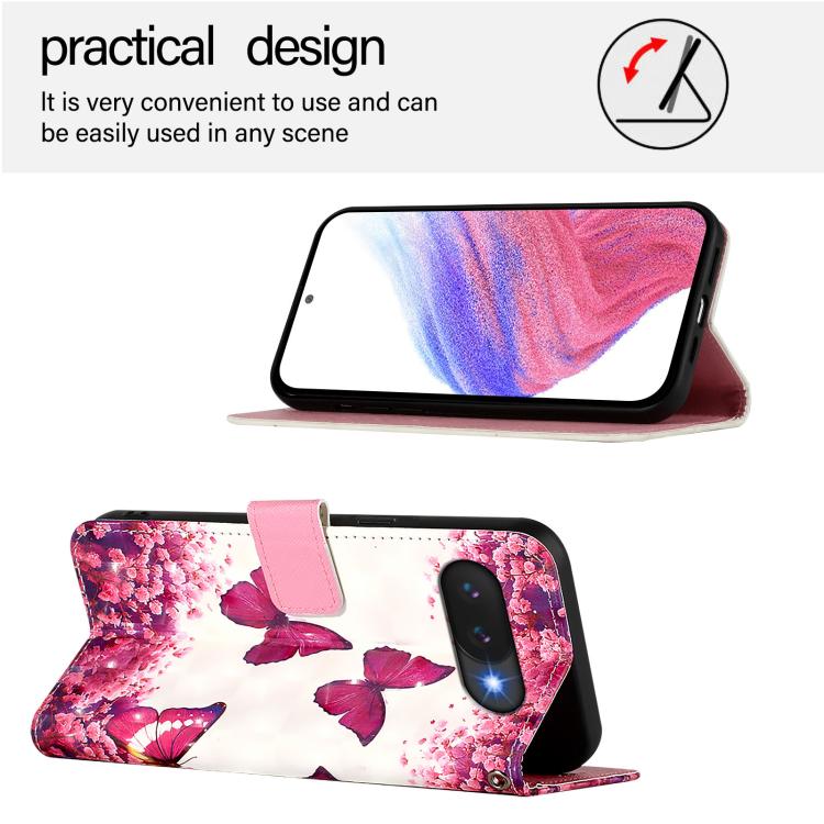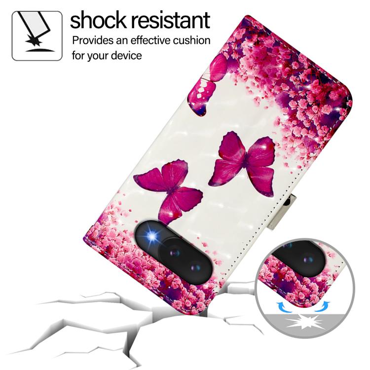 Funda de Cuero con Tapa Horizontal y Pintura 3D para Google Pixel 9A (Mariposa Rosa)