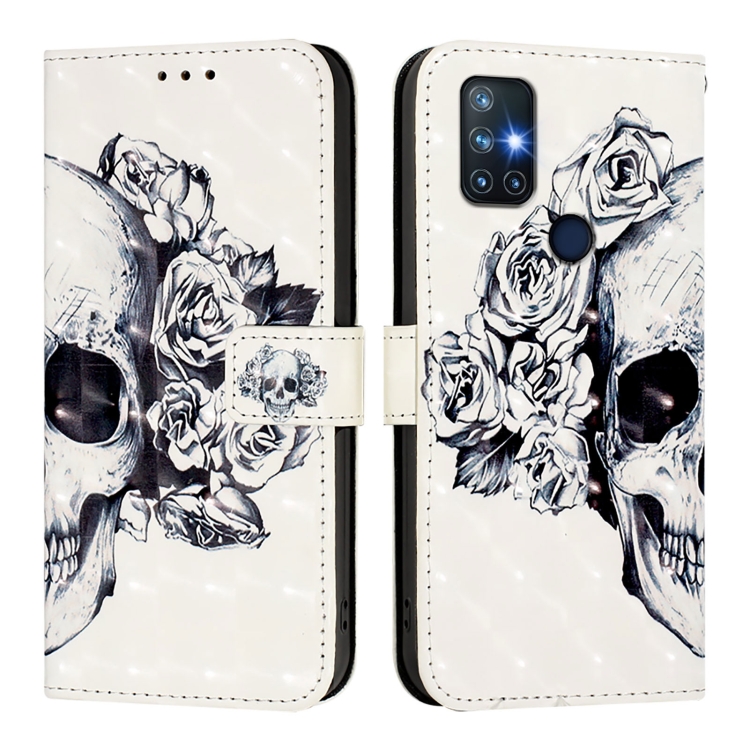 Funda de Cuero con Tapa Horizontal y Pintura 3D para OnePlus Nord N10 5G (Calavera)