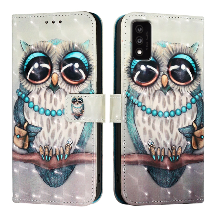 Funda de Cuero con Tapa Horizontal y Pintura 3D para TCL 30T T603Dl (Búho Gris)