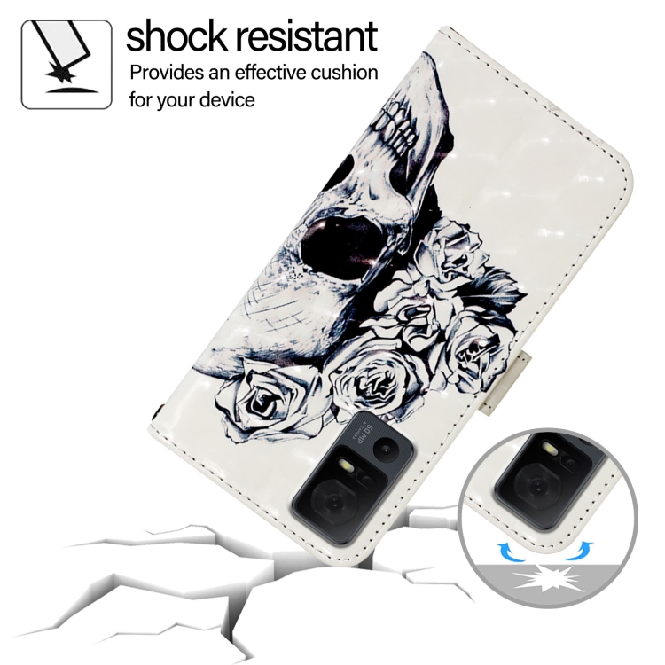 Funda de Cuero con Tapa Horizontal y Pintura 3D para TCL 40 XL/40 T T608Dl (Calavera)